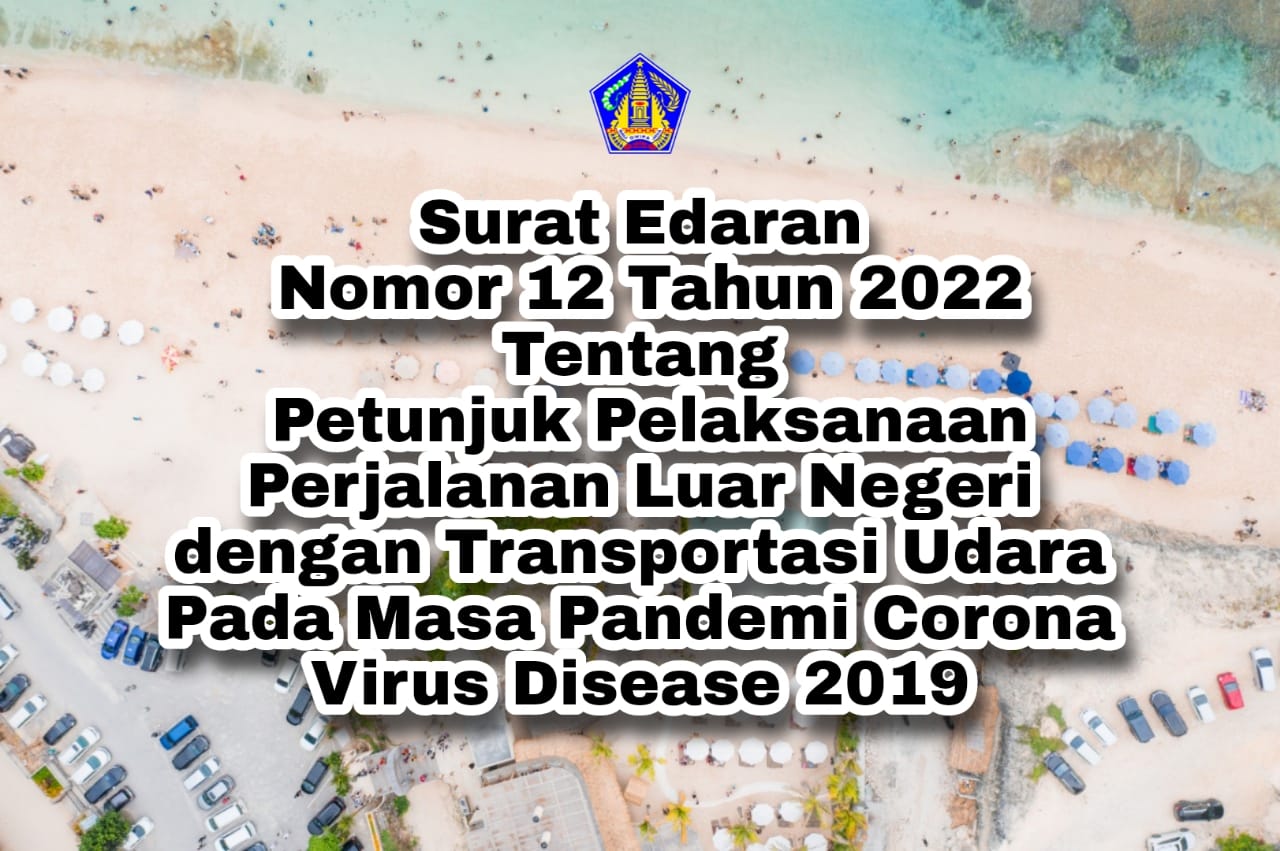Info TerkiniSurat Edaran Nomor 12 Tahun 2022 Tentang Petunjuk Pelaksanaan Perjalanan Luar Negeri dengan Transportasi Udara pada Masa Pandemi Corona Virus Disease 2019 11 Februari 202211 Februari 2022 SE-12-TAHUN-2022Unduh